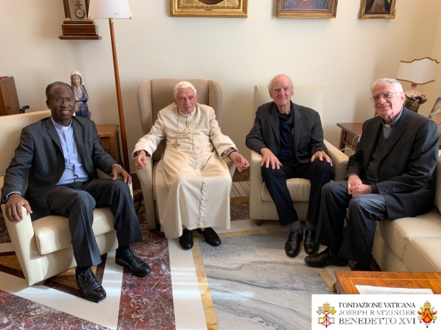 (11/11/19) En la mañana de este domingo 10 de noviembre de 2019, el Papa emérito Benedicto XVI recibió en el Monasterio Mater Ecclesiae, en el Vaticano, la visita del profesor Charles Taylor y del padre Paul Béré S.J., a quienes el Papa Francisco les había entregado el Premio Ratzinger el día anterior, durante una ceremonia solemne que tuvo lugar en la Sala Clementina del Palacio Apostólico.