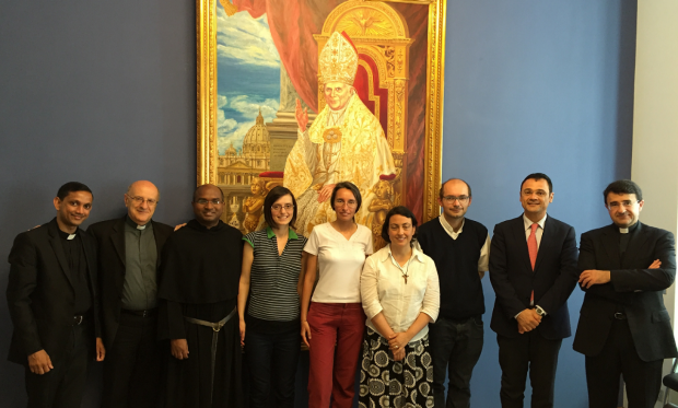 (23/6/16) Se ha desarrollado ayer en la nueva sede de la Fundación el primer encuentro de los doctorandos sobre distintos aspectos del pensamiento de Joseph Ratzinger Benedicto XVI. El encuentro fue presidido por el monseñor Giuseppe A. Scotti, presidente de la Fundación. Los 10 doctorandos, coordinados por el profesor Pierluca Azzaro, son cuatro mujeres y seis hombres, de los que cinco sacerdotes y un lego. Las mujeres vienen de Italia, Albania, Croacia y España, los hombres de India (2), España (1), Italia (2), y Vietnam (1). Las universidades de procedencia, en Roma, son: Gregoriana, Lateranense, Santa Cruz, Antonianum, Marianum y Teresianum.